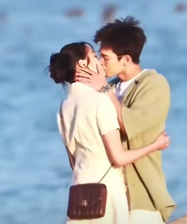 > 关晓彤李昀锐海边拥吻, 李昀锐大手托住关晓彤后颈, 男友力爆棚啊